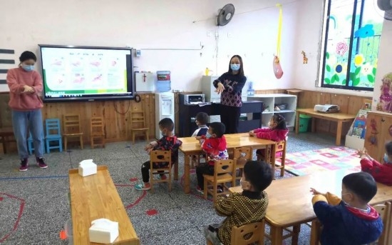 乐山五通桥区实验幼儿园宝宝们学习七步洗手法