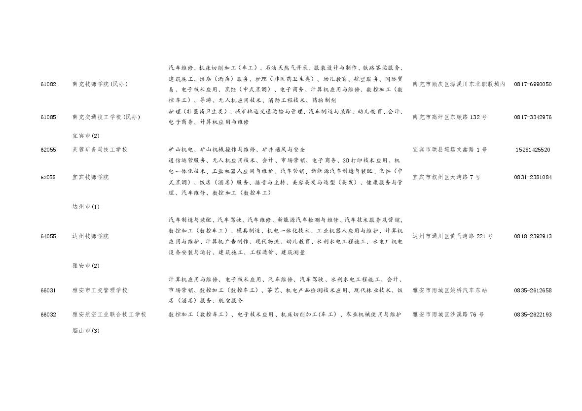 四川省教育厅四川省人力资源和社会保障厅关于公布四川省2020年具有中等职业学历教育招生资格学校及专业的通告