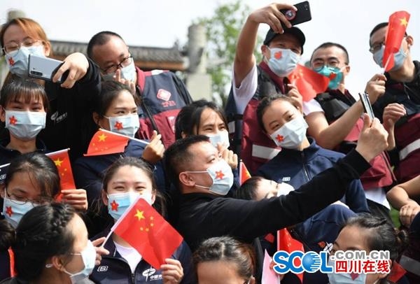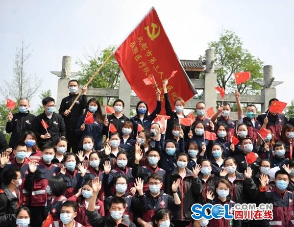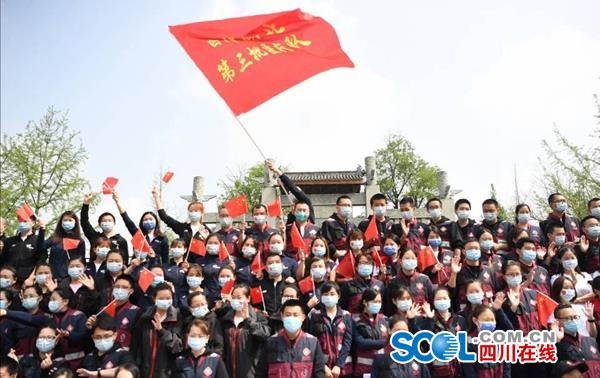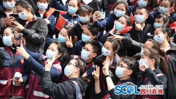 3月31日下午,四川援助湖北医疗队第四批撤离队员平安返回四川。