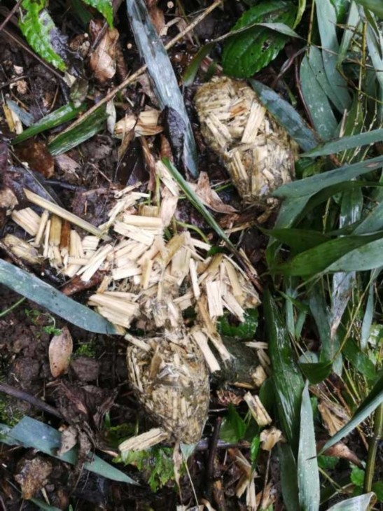 “从粪便的新鲜度来看,我们判断是几天前的粪便,也就是说熊猫在这一片活动应该是有好几天了。”洪雅林场张村管护站站长马丽告诉记者,现场周围全是竹子签签,熊猫吃竹子,排出来的粪便就基本全是竹片子。