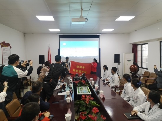 “欢迎德阳援湖北医疗队员何清回家!”随着一辆挂有如此字样横幅的中巴车驶入德阳市人民医院大门,4月14日下午,德阳首位援湖北医护人员,德阳市人民医院呼吸与危重症医学科副主任、副主任医师何清结束隔离休养,回到家乡。至此,德阳援湖北医疗队41名队员全部返回。