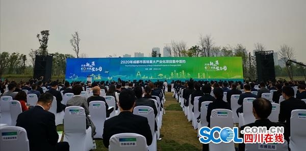 四川在线消息(记者 蒋君芳 文/图)4月16日,2020年成都市首场重大产业化项目集中签约在锦城公园举行,现场集中签约33个项目,场外签约项目135个,签约项目总量168个,协议金额4605亿元。其中,美国奥洛瑞高端医疗装备、四川一汽丰田配套集群等先进制造业项目65个,协议金额1274亿元,涉及电子信息、生物医药、航天航空、汽车制造、装备制造等产业;葛洲坝集团熊猫古镇、融创中国天府影都等现代服务业项目94个,协议金额3140亿元,涉及现代物流、医疗健康、总部经济、文化创意、旅游等产业;中关村天颐•田园硅谷等都市现代农业项目9个,协议金额191亿元,涉及智慧农业等产业。