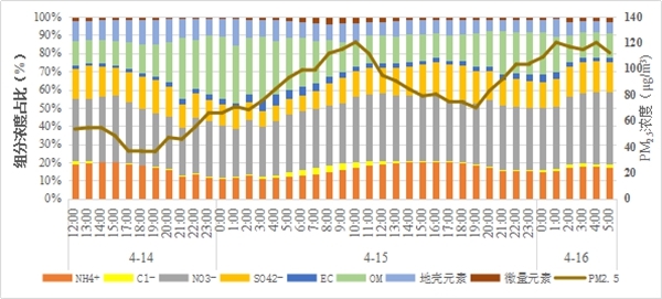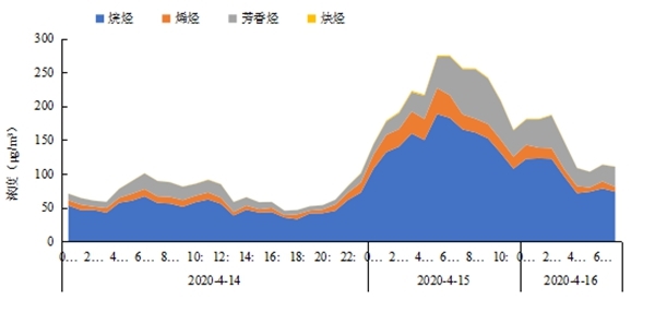 4月14日-16日 大气科研实验室观测到的VOCs组成浓度变化趋势