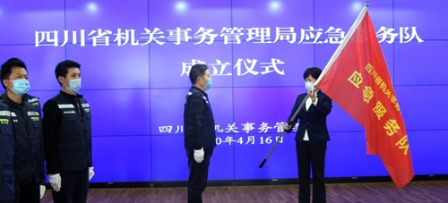 四川在线消息(记者 钟振宇)“我宣誓,我志愿加入应急服务队。对党忠诚、服从命令、听从指挥……”4月16日下午,省机关事务管理局4楼会议室内,17位精神抖擞的干部整齐列队,身着醒目的救援服装,举起右手集体宣誓。这一授旗、宣誓仪式,标志着该局应急服务队正式组建成立。此举旨在积极应对紧急突发事件,更加有效地开展公务用车、办公设施设备物资保障和生活服务等应急保障,充分发挥好机关事务服务保障功能。