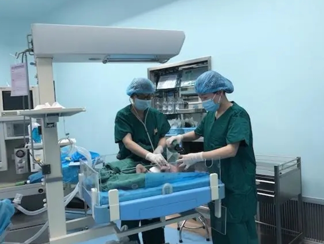 消毒、铺巾、麻醉……到了手术室后,柴芝红和同事配合默契,从切开皮肤到取出婴儿,只用了不到2分钟的时间。“孩子刚出来时,全身青紫,四肢松弛,没有呼吸,宫内窒息加上早产,情况十分危险”,见到孩子的情况,应晶晶立即开始接手抢救新生儿。