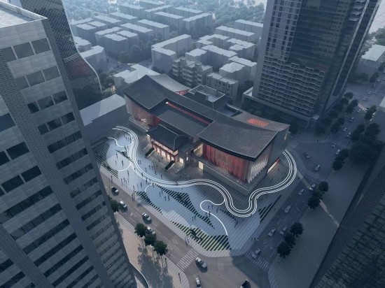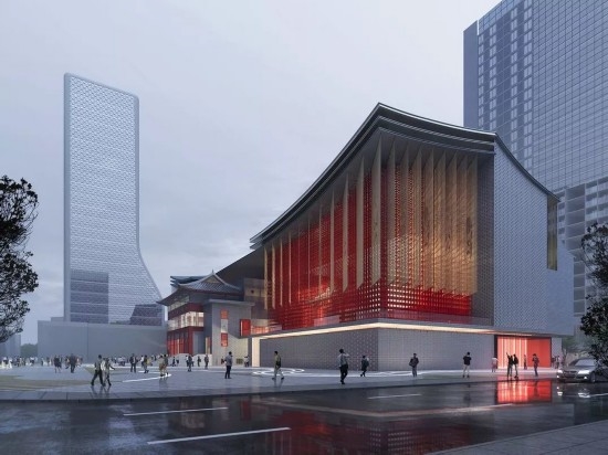 外观上,扩建的成都川剧艺术中心兼具官式建筑的端正与川西民居特色,整体外观采用浓烈的中国大红色,与川剧火热的艺术风格契合。建筑屋顶起翘的飞檐式,灵感源自于川剧服饰中的翘盔帽、翘坎肩,彰显成都韵味。“穿过春熙路的喧嚣、越过太古里的时髦,阅尽一个世纪沧桑的川剧艺术与悦来茶楼,将以时尚的姿态重回成都的舞台。”