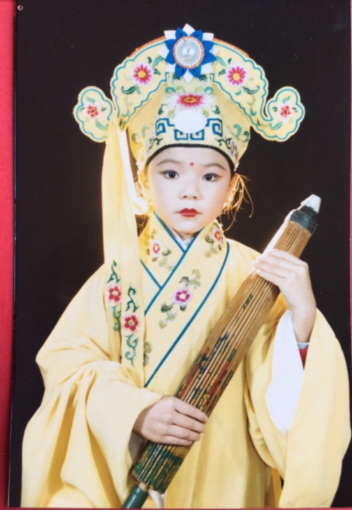 戏迷吴雪在锦江剧场旁边照的童年川剧照