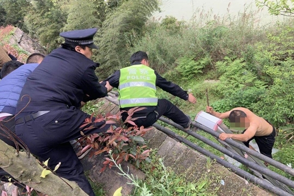 为逃避处罚,罗某学弃车跳入河中,与执勤民警对峙。所幸河水不深,经过民警半个多小时的劝告后,罗某学终于配合民警将其救助上岸。