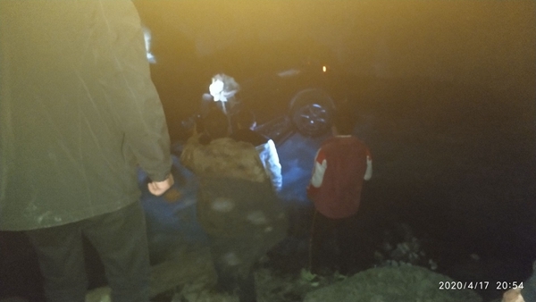省林草局第十防火指导组负责人蒋洪彬回忆,当时他们是看到闪烁的车灯、听到车主的呼救声时发现了落水的越野车。指导组队员、巴塘县林草局防火办的甲措立即停车,随后蒋洪彬和指导组队员宋治银、钟勇紧随迅速下河查勘情形,发现河水湍急,车辆正立、损毁变形严重,目测车子距离河岸约2米,无法施救。