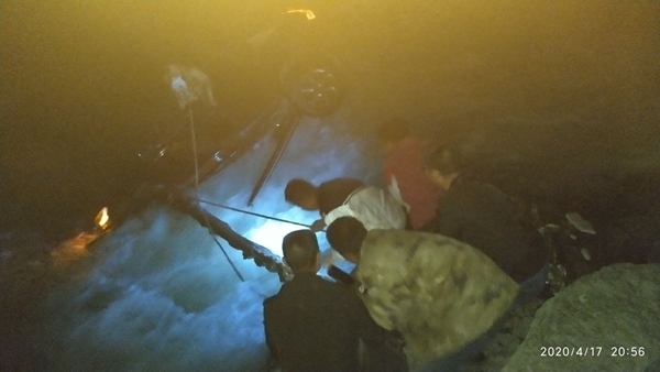 “车里只有车主一个人,我们安抚了他的情绪,就赶紧开上我们指导组的车去找救援工具。”蒋洪彬说,指导组在沿途搜索木板、绳索等工具,同时报警。行驶到约5公里处,发现路边有长度相当的大木条,又向附近村民借了粗绳,立即返回,在驾驶拖拉机路过村民的帮助下,照明、系木、丢绳、系身、搭桥、接应的一连串动作后,成功把车主救上岸,约2分钟后,车子就被激流的河水冲翻。