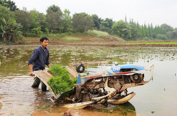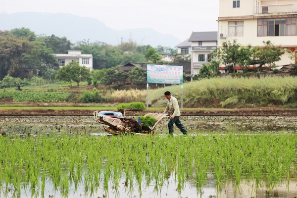 “再有7、8天,我的120亩水田就能耕种完了。”4月21日,泸州市江阳区况场街道红山村种粮大户雷益富看着田里奔忙的插秧机,仅两天时间,插秧机就“铺”了20多亩水田。“一天插秧15亩,预计10天左右,插秧机就能完成120亩水田的插秧,简直就是一款助农‘神器’。”雷益富说。