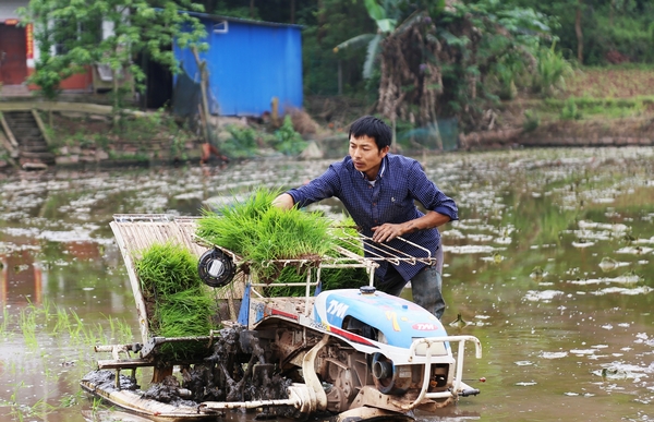 “以前人工插秧一人一天最多插秧1亩水田,120亩水田至少一个月,工人工资就得3万元左右。我用2万元左右购买一台插秧机器,使用寿命5年左右。而且现在用机器插秧,不仅缩短了插秧时间,还节约了人工工资。最主要的是,机器插秧用力更均匀、更标准化,每亩产量增加100—200斤,预计今年年产量14万斤。”雷益富说。