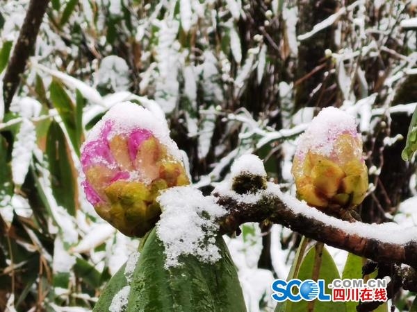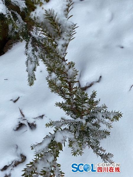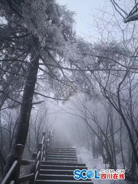 这个季节的光雾山,杜鹃未开,红叶尚早,一场茫茫白雪为景区增添了一份诗意。海拔2330米的香炉山景点,山岭沟壑间,雾凇悬挂,山间待开的花苞被冰晶包裹,美丽“冻”人。