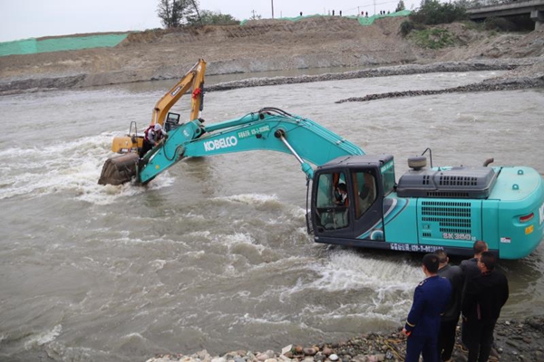 9时,消防指战员到达现场后了解情况得知,驾驶员原本在河道中作业,上游突然放水,涨水后水流湍急、水深约一米,无法脱困。此时,河水仍然在上涨,即将淹没挖掘机驾驶室,驾驶员站在驾驶室顶部,情绪十分紧张,不停地冲岸边大喊大叫。消防员不断地安抚驾驶员情绪,防止他做出下水的举动。