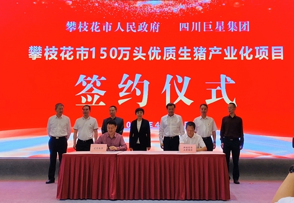 4月23日,攀枝花市举行150万头优质生猪产业化投资项目签约仪式。四川巨星企业集团与盐边县、仁和区、米易县分别签订合作协议,计划投资45亿元,6年内在攀枝花建设具有世界一流水准的生猪产业链。
