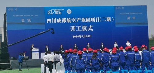 2019年4自18日,航空产业园项目一期动工建设。项目一期于2018年11月启动规划设计,去年1月开始拆迁,4月动工建设,8月底交付厂房、企业入驻,9月部分企业首批产品顺利交付,仅238天便实现当年拆迁、当年建设和当年投产的目标,再次刷新了重大项目建设的“成都速度”。 一期共引进成都永峰科技、哈尔滨航新等6家核心配套企业,预计今年6月一期全面建成,企业年底全面达产。