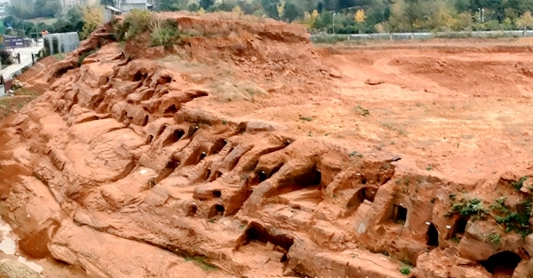 这片崖墓自上而下共4层分布于浅丘的东面,年代从东汉晚期一直持续到六朝时期。