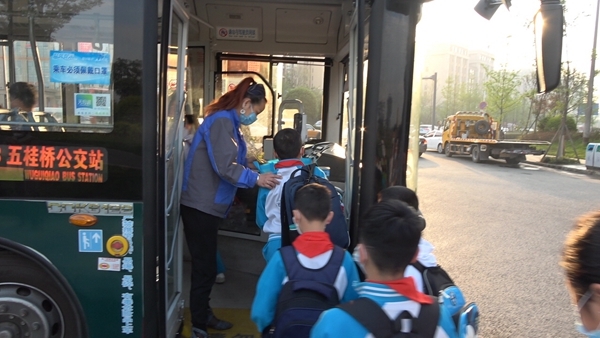 “车上只有我们同学和一些家长,很有安全感,而且车子把我们直接送到校门口,特别方便。”五年级二班的李傲对回到学校难掩兴奋。和他一样激动的还有五年级一班的张宇涵,虽然平时也是自己坐公交上学,但今天却专门提前了半个多小时起床准备了,虽公交车七点过才到站,但六点五十就和爸爸一道迫不及待地出门了。