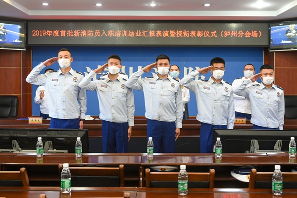 四川在线消息(向珊珊 周梦颖 记者魏冯)4月28日,记者从泸州市消防救援支队获悉,泸州市消防救援支队昨日迎来9位新“蓝朋友”,他们在昨天上午举行的2019年度首批新消防员入职培训结业汇报表演暨授衔表彰仪式上正式授衔并入职,其中年龄最大的才26岁,最小20岁,这是消防救援队伍改制转隶后四川首批正式入职的消防员。