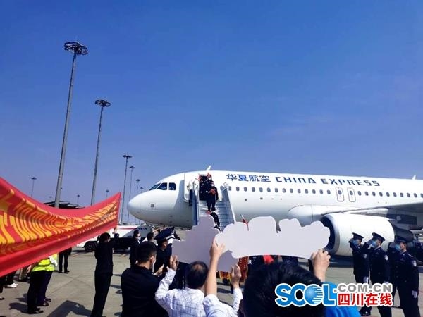 4月28日下午3点15分,华夏航空G59098停在了双流国际机场,四川司法行政系统61名援鄂英雄圆满完成工作任务,乘坐本次航班返回成都。
