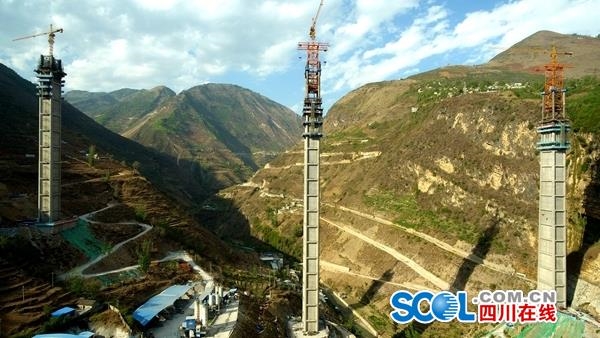 4月28日,从四川省铁投集团传来好消息:位于凉山州金阳县金阳河特大桥6号主墩钢管安装于近日封顶,6号主墩高196m,为同类型墩柱“世界第一高”。大桥计划今年12月完工,为当地脱贫攻坚搭起“连心桥”。