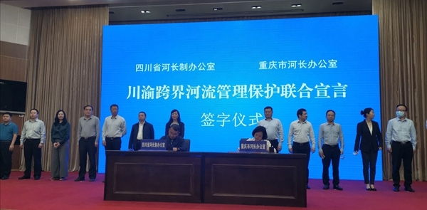 川渝地区共处长江上游,是长江上游生态屏障的最后一道关口,对长江中下游地区生态安全承担着不可替代的作用。川渝跨界流域面积50平方千米及以上,有河流关系的共有81条,其中干流流经四川与重庆的有52条河流。会上,川渝两地河长制办公室决定,双方将共同组建“川渝河长制联合推进办公室”。