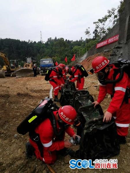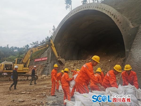 四川在线消息(记者 王眉灵)4月30日上午,成自高铁全线重点控制性工程白云山隧道洞身明洞工区现场安全人员发现:由于连降暴雨,隧道泄水涵管堵塞,雨水漫过路面,冲至工区,人员撤离过程中洞口边坡突然滑塌,洪水倒灌隧道内,致使多名作业人员被困的险情,救援队伍迅疾按照应急处置流程展开救援……