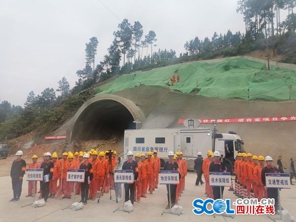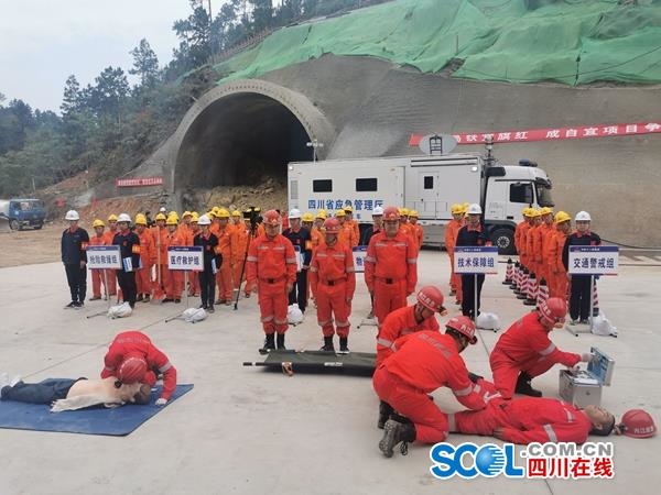 别急,这不是真实发生的场景,只是四川省生产安全救援中心指导隧道承建单位中铁十二局在施工现场开展的防汛抢险综合演练,成自高铁各参建单位参加了演练。