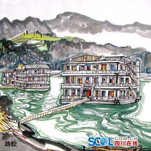 王浩儿码头,位于乐山大佛脚下的岷江上游不远。游览大佛拾级而上,可看到对面的城市岸边几艘华丽趸船;“夜游三江”的灯光秀中,也有这几艘船上的瑰丽霓虹点缀其间。