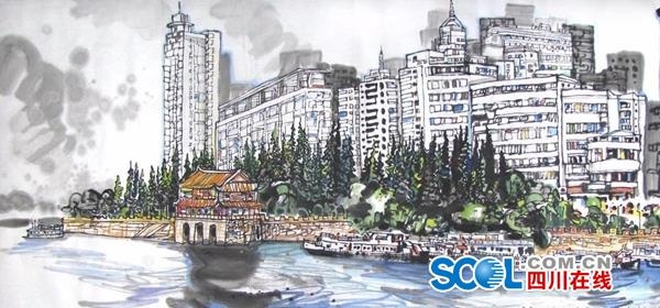 画家郭劲松笔下的水上美食街
