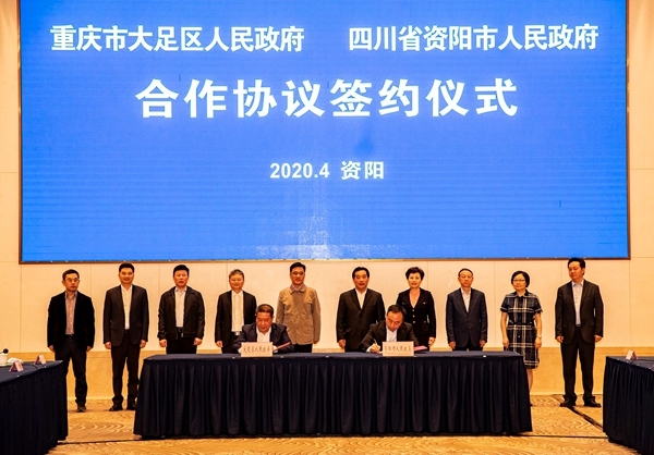 4月30日,重庆市大足区党政代表团来资阳考察交流,同资阳签订合作协议,共建资(阳)大(足)文旅融合发展示范区,明确联合开发跨区域文化旅游产品,共同打造旅游精品线路,推动两地旅行社开展组团旅游业务。
