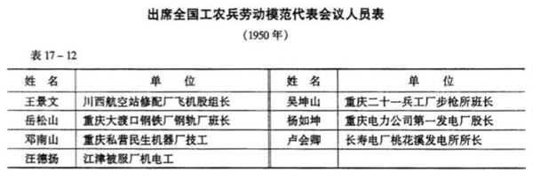 “我省很重视对于劳模的宣传和培养,从1951 年下半年,全川各级工会有意识地培养和教育劳模,帮助总结和推广他们的先进经验。”这位专家说,到 1952 年全川先后掀起了学习王景文、陈树兰、黄荣昌的热潮。其中,空军修配厂技工王景文,正是成都市十余万工人中选出的全国劳动模范,出席了1950年的全国工农兵劳动模范代表会议。