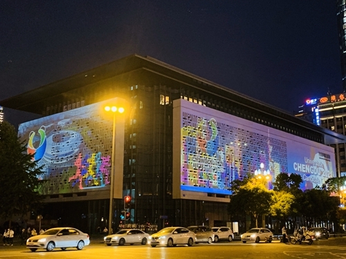 大运会主题,将运动图形、大运会往期珍贵影像照片墙、熊猫等元素与大运官方宣传组图相结合,凸显大运会绿色·智慧·活力·共享的办赛理念。