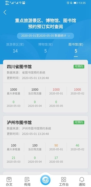 省图相关负责人介绍,为满足读者借阅需求,在“劳动节”假日期间,即5月1日到5月5日,省图将提供对外提供借阅、还书和咨询服务。同时总服务台、甲骨文记忆展、川图百年展览区、中文图书借阅区(一)(二)、自修区、文创展示区、文旅宣传体验区、读读书吧、中文报刊阅览区、李劼人˙李一氓文库、中文图书借阅区(五)正常开放,服务时间为9:00到17:00。