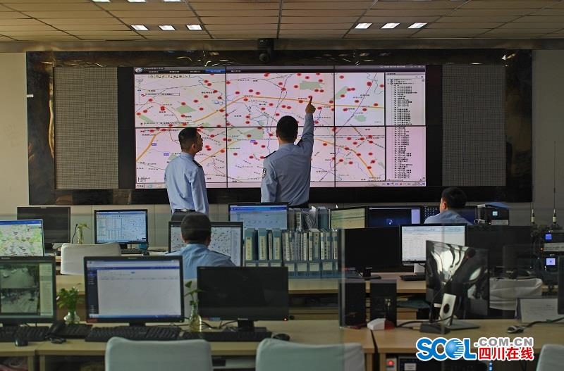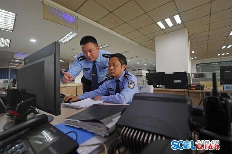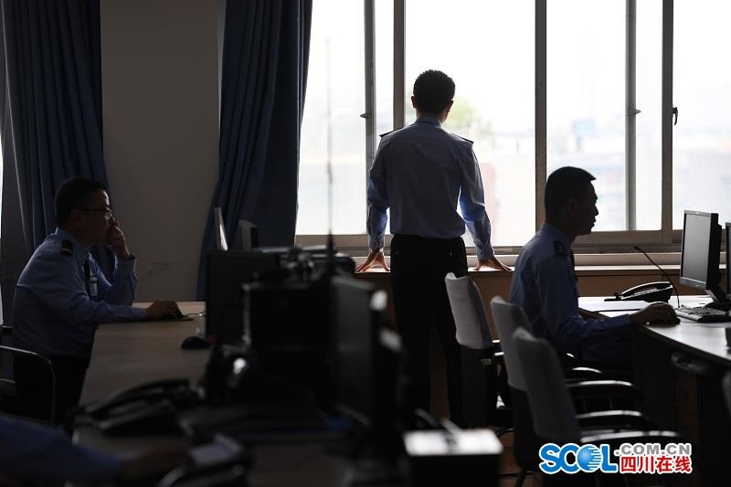 四川在线消息(记者 肖雨杨 摄)5月2日上午9点,在成都市公安局金牛区分局的警务作战指挥中心里,6名民辅警准备完毕又将开始新一轮24小时的值守。