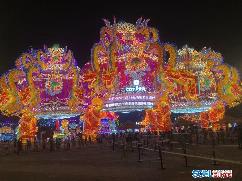 四川在线消息(记者 秦勇 王若晔 蒲南溪)5月1日晚,自贡中华彩灯大世界流光溢彩。4月30日,第26届自贡国际恐龙灯会重启暨中华彩灯大世界恢复开园,自贡灯会在“五一”假期成为游客打卡的重要一站,游客有序入园赏灯。