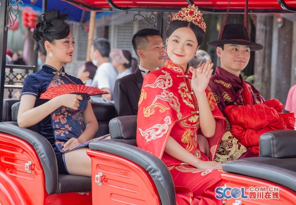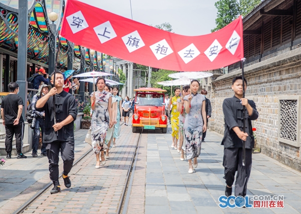 5月3日,“穿上旗袍去安仁”活动正在成都安仁古镇火热举行。一袭旗袍、一把油纸伞、一条公馆老街让不少游客感叹仿佛穿越到了上个世纪。在旗袍主题巡游活动中,由旗袍女神、民国先生和花车等方队组成的豪华巡演阵容,以及街头艺人音乐展演,给游客带来了一场典雅古朴的视觉盛宴,让人大饱眼福。