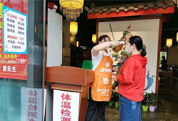 工作人员告诉记者,自恢复正常营业以来,每天除了对所有餐具高温消毒外,在上班前也会对店员进行体温测量,督促他们佩戴好口罩才能上岗,与此同时,还积极推行公筷公勺使用,全力保障顾客的就餐安全。