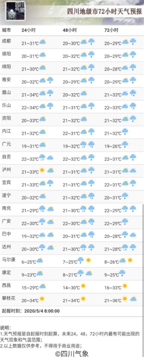 【四川各主要城市72小时天气预报】