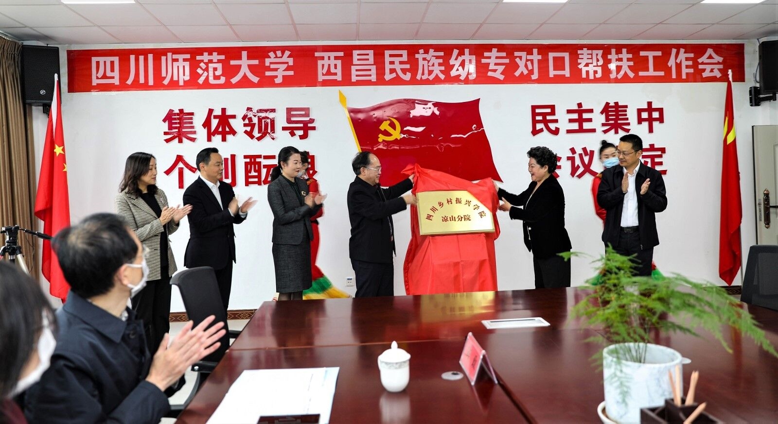 四川师范大学与西昌民族幼专结缘源于2019年,四川师范大学牵头协调省内其他七所高校力量,汇集智力优势、资源优势,全方位推动西昌民族幼专在教学科研、专业建设、人才培养、队伍建设等方面工作的开展。今年,在凉山全力攻克深度贫困堡垒的关键时刻,四川师大积极响应实施乡村振兴战略号召,在西昌民族幼专成立“四川乡村振兴学院凉山分院”。