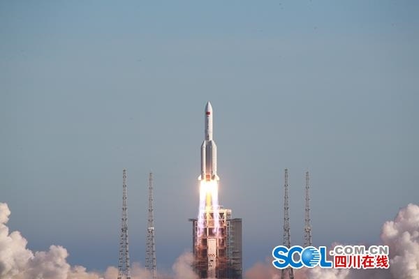四川在线消息(王玉磊 记者 吴浩 摄影 屠海超)5月5日18时00分,随着“轰隆隆”的巨响,仿佛平地一声惊雷,身躯庞大的长征五号B运载火箭拖着火红的尾焰直冲云霄,耀眼的光照亮了海岛椰林上空洁白的云朵。“成功了!终于成功了!”指控大厅中瞬间爆发出热烈的掌声,在各自的岗位上凝神聚力、严阵以待的参试人员们尽情地欢呼鼓掌,相互拥抱,多日来心头沉重的压力终于一扫而空。