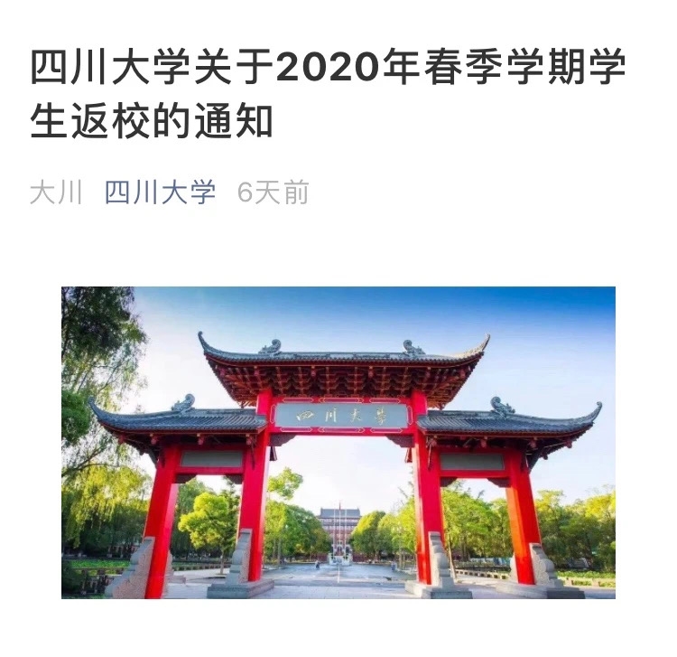 四川大学于2020年5月6日起启动学生分期分批、错时错峰有序返校。