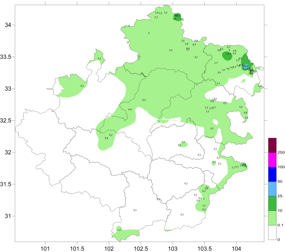2020年5月6日08时~5月7日08时降水量。阿坝州气象台供图
