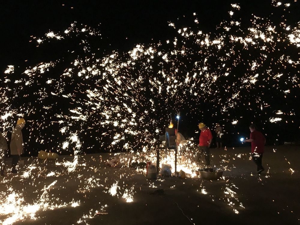 近日,自贡富顺县长滩镇邀请到该镇的非遗传统技艺万氏“水铁花”第十三代传人万永杰,在长滩镇举行了一场打铁花表演。