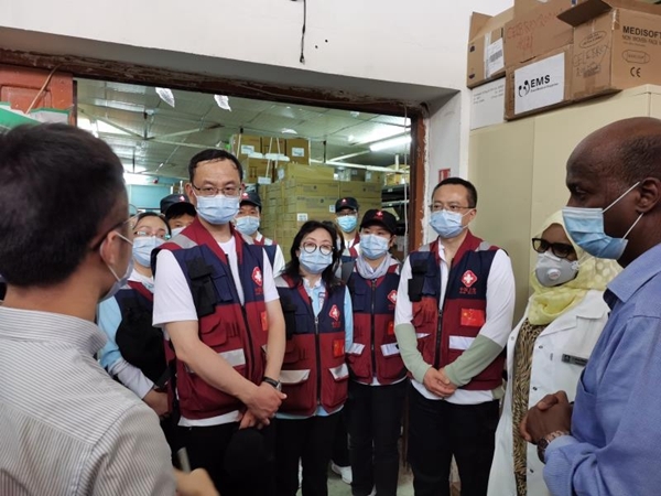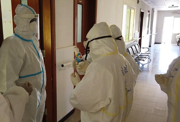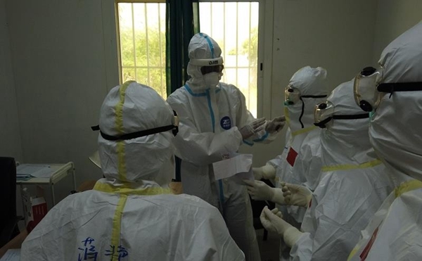吉布提气候炎热,白天气温在40-44℃,地表温度55-60℃,在当地工作的6天里,专家组与总统卫生顾问、卫生部长、社保局总局长等进行了深入交流,前往吉布提布法医院、阿尔塔医院、阿里萨比耶地区医院、社保局中心医院等吉布提抗疫基层医疗机构实地走访,并在做好个人防护后,前往定点医院探望了确诊的中国籍患者。