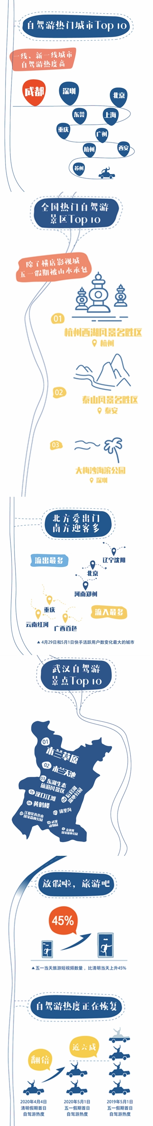 5月6日,快手大数据研究院和高德地图联合发布《2020年五一假期出行总结报告》,短视频平台和导航软件的奇妙跨界让今年五一的出行态势跃然纸上:自驾游、周边游、云旅游成为新主流,其中成都超过深圳、北京、上海,排名自驾游热度首位城市。