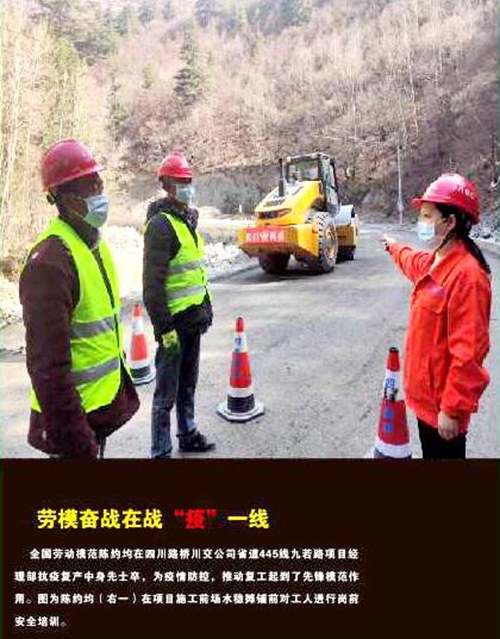 模范带头当抗“疫”表率。全国劳动模范、四川路桥陈约均,全国技术能手、四川工匠、九洲集团游洪建等,第一时间响应企业复工复产指令回到岗位,带头执行疫情防控要求,利用自身平台优势、技术优势及时协调指导、解决因抗击疫情出现的生产技术问题,用自己的辛劳和汗水筑牢了群防群治的坚固防线。