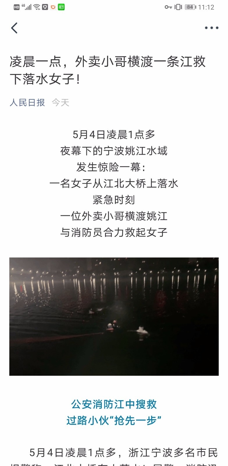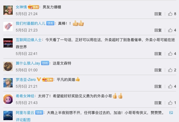 事件发生后,人民日报微信公众号发文报道这名外卖小哥的事迹,众多网友纷纷为其点赞。