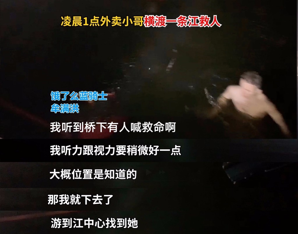四川在线消息(程欣 记者 文铭权 樊邦平)“五一”假期期间,浙江宁波发生了惊险一幕:一女子凌晨落水,不知所踪。在搜救过程中,饿了么外卖小哥果断跳进姚江,将女子救至安全区域。