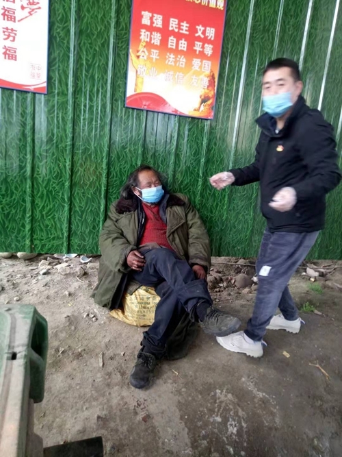 接到消息后,该站工作人员立即带着御寒衣服、方便食品、防疫用品等赶到现场开展救助……送上食物、御寒衣服、帮忙佩戴口罩、开展体温检测、问询了解流浪情况等等。当时,该员无法正常交流,不能说出自己的家庭及个人情况,救助站启动疫情防控期间流浪人员应急救助预案,及时将其转送入江油市传染病医院实开展留院医学隔离观察及后续站外托养照料。
